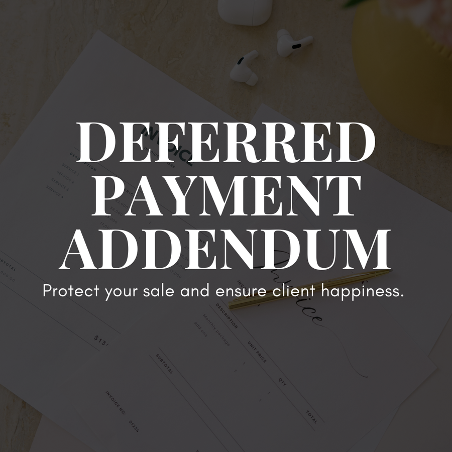 This professionally drafted Deferred Payment Addendum allows photographers to offer extended payment terms to clients who miss original deadlines, while still safeguarding the business. The addendum outlines clear expectations for updated payment schedules, late fees, and—critically—the withholding of deliverables until full payment is received.